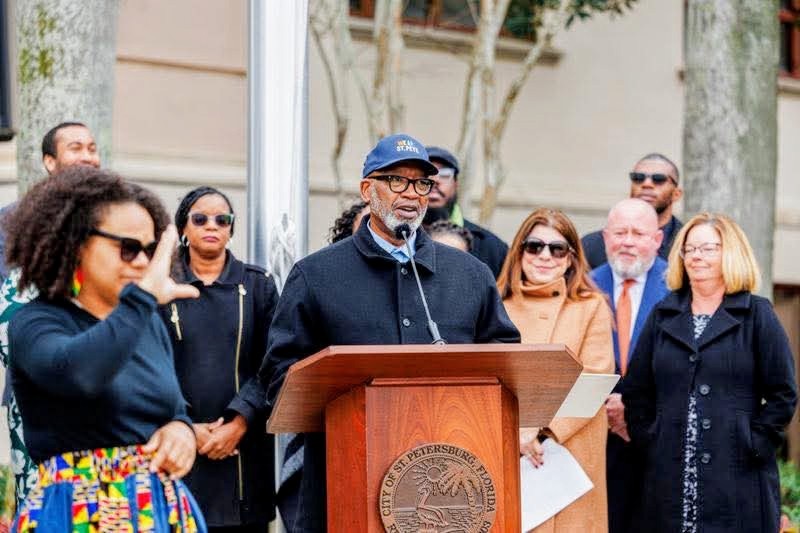 St. Petersburg Mayor Ken Welch speaks at a recent Black History Month celebration outside of City Hall. State legislation would ban such ceremonies. Photo: City of St. Petersburg.