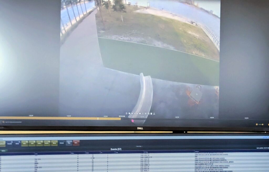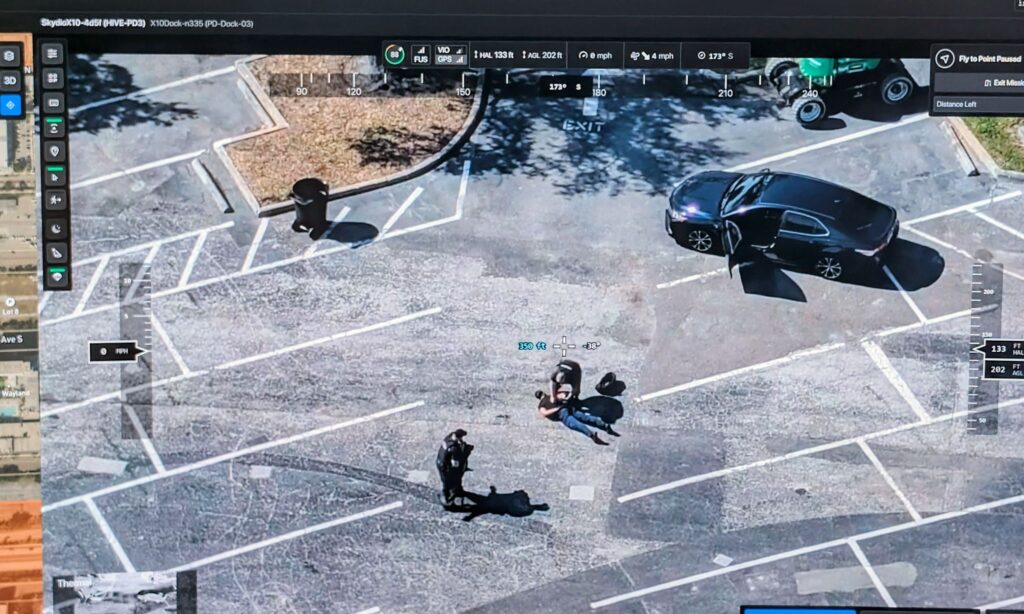 A view of a camera feed from a Hive drone after it intercepted a staged auto theft at Tropicana Field.