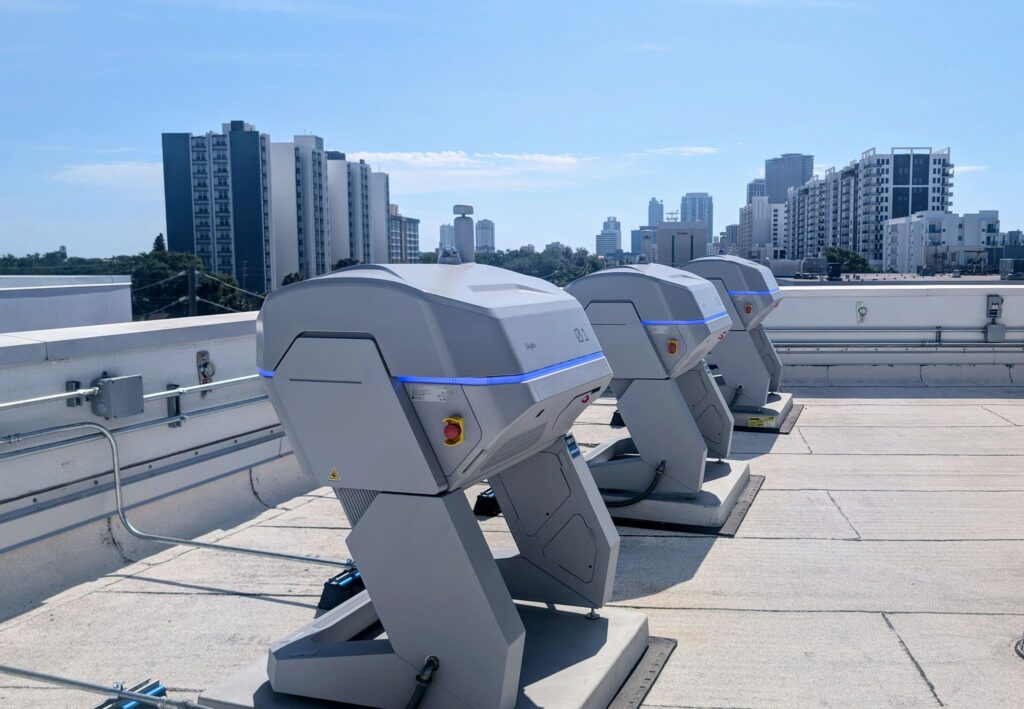 A Drone Hive atop the St. Petersburg Police Department’s headquarters launches one of three remotely operated aircraft that now respond to calls for assistance in real-time. All photos by Mark Parker.