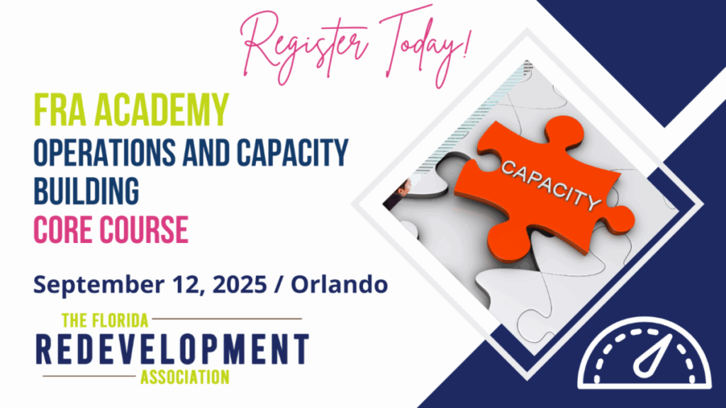 The Academy is a unique educational program, designed to promote a prerequisite level of knowledge and professionalism in the field of community redevelopment. The courses are open to anyone interested in learning more about redevelopment practice in Florida. Click here to register to attend.
