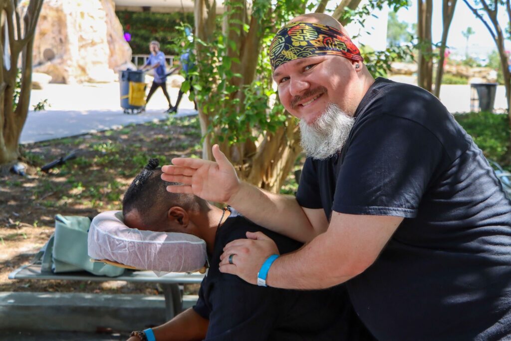 Additional games include an inflatable ax-throwing arena. Pinellas Technical College is hosting a barber and grooming station.