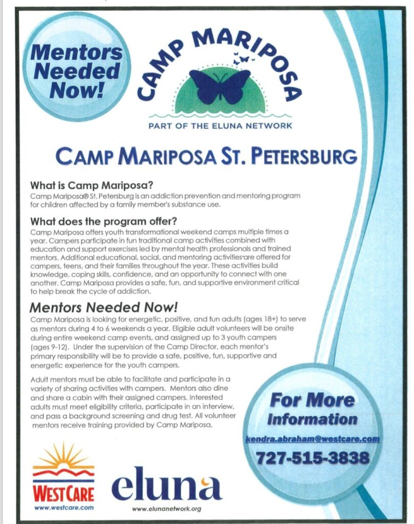 Camp Mariposa® St. Petersburg is an addiction prevention and mentoring program for children affected by a family member’s substance use.