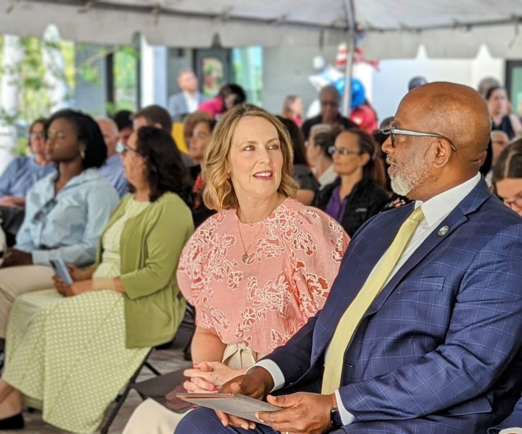 U.S. Rep. Kathy Castor (front, left) and St. Petersburg Mayor Ken Welch. Castor will no longer represent the city under Florida’s new congressional map. Photo by Mark Parker.