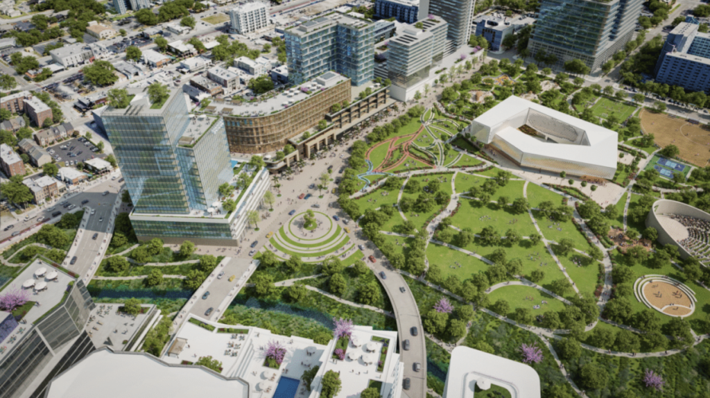 “Our approach mirrors nationally recognized best practices for inclusive development, similar in structure and intent to precedent projects that integrate sports, housing, retail, culture, and workforce pathways into cohesive urban districts,” states the proposal.