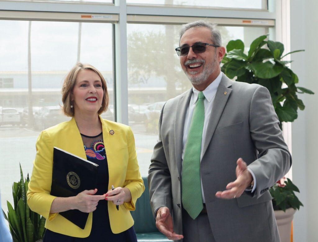 U.S. Rep. Kathy Castor (left) and Raul Alfonso, executive vice president and chief commercial officer for Port Tampa Bay, celebrate the facility receiving $10 million in federal funding on Thursday. Photos: U.S. Rep. Kathy Castor’s office.