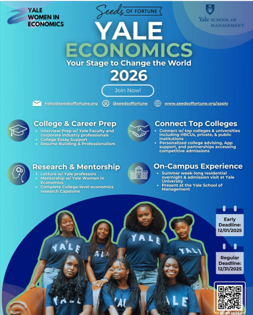 eeds of Fortune Inc. Scholars in Partnership with Yale Women in Economics is a 10-month program that delivers an Economics capstone project and college prep. Click here for more information.