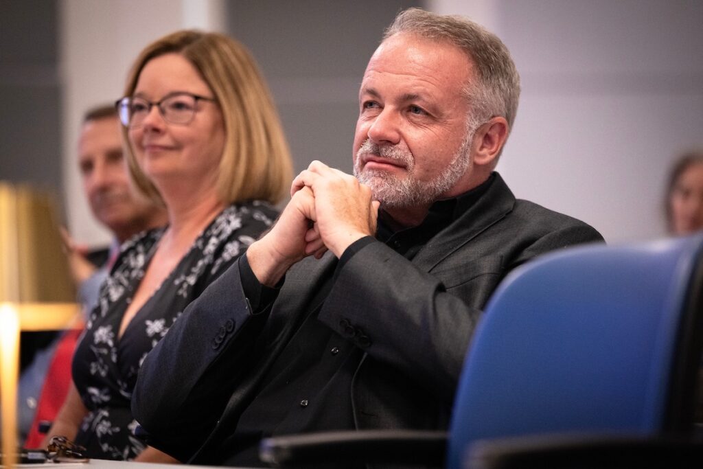 Jason Mathis (right), CEO of the St. Petersburg Downtown Partnership, and City Councilmember Gina Driscoll, a staunch supporter of the St. Petersburg Innovation District and its Maritime and Defense Technology Hub.