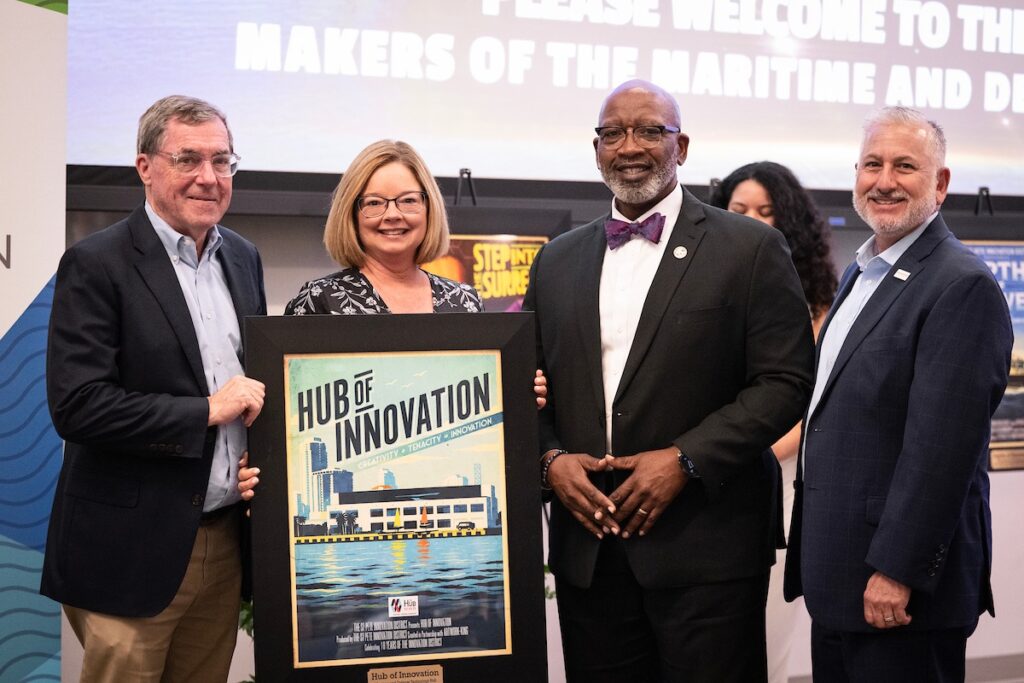 From left: Jeff Baker, government and community relations manager for Duke Energy; former Deputy Mayor Kanika Tomalin; former Mayor Rick Kriseman; Rob Kapusta, St. Petersburg Downtown Partnership board member; and Jeff Hearn, St. Petersburg Downtown Partnership board member, at the St. Petersburg Innovation District’s 10th anniversary celebration. All photos by Brian James unless otherwise noted.