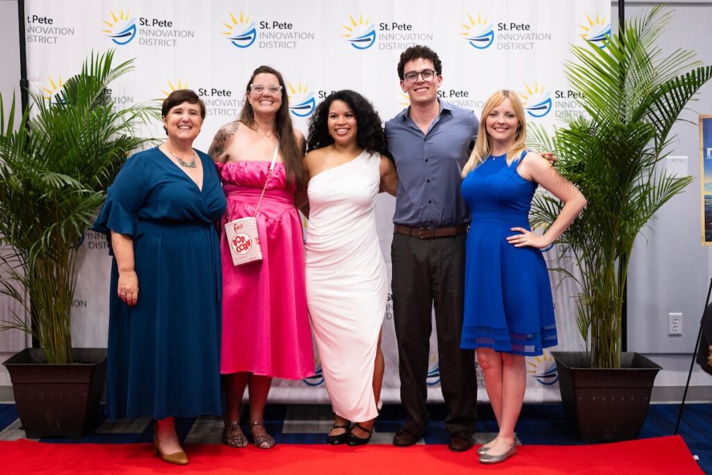 The St. Petersburg Innovation District team, from left: Alison Barlow, executive director; Lauren Bell, chief operating officer; Nisuka Williams, innovation manager; JackFeldman, community manager; and Amber Pacetti, innovation manager.