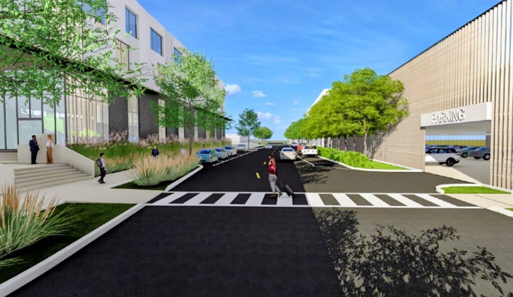 The Maritime and Defense Technology Hub and Center for Coastal Resilience would share a new parking garage with Albert Whitted Airport (right). Image: City documents.