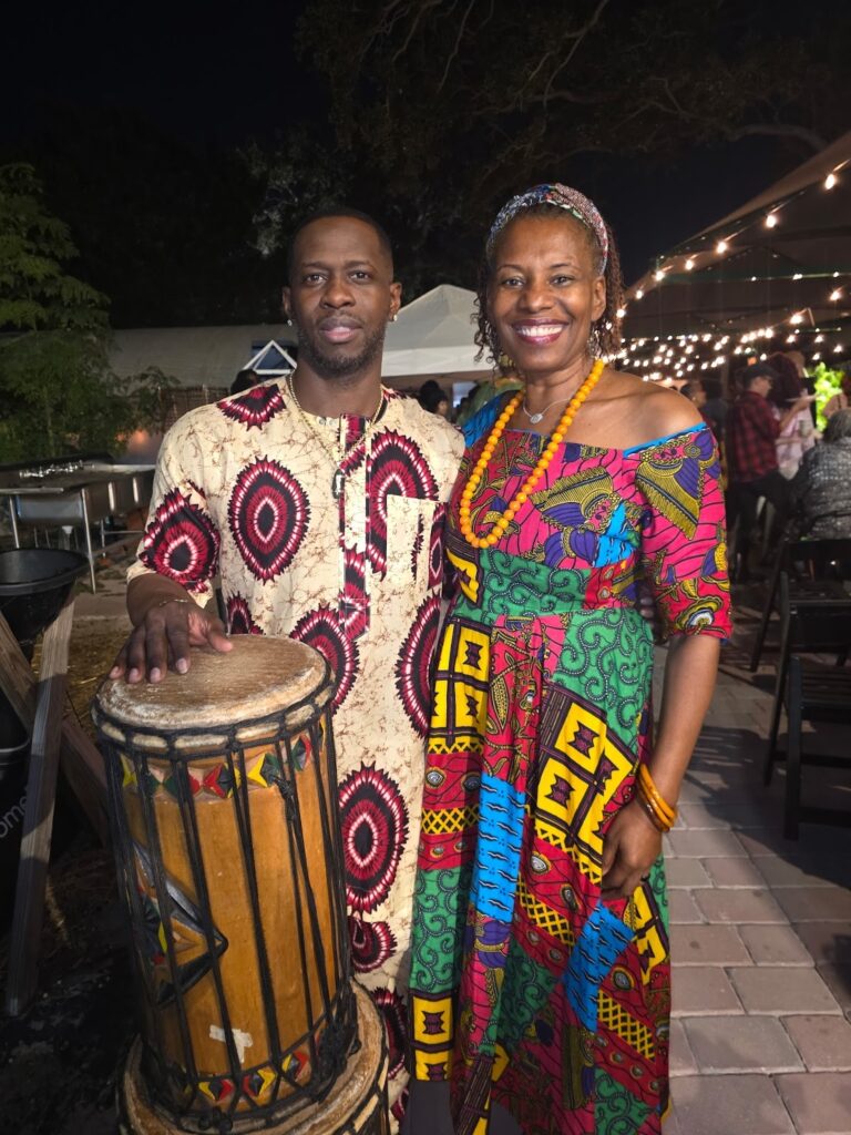 Photo by Carla Bristol: African drummer (left), St. Pete Youth Farm Director Carla Bristol (right)