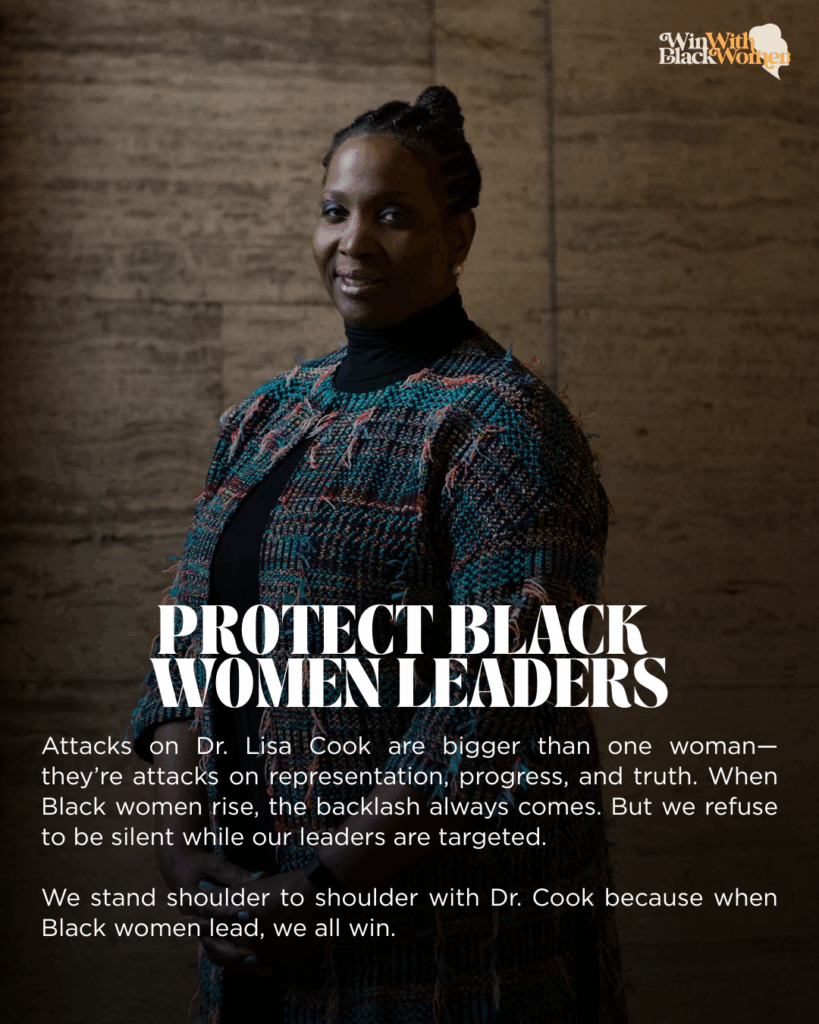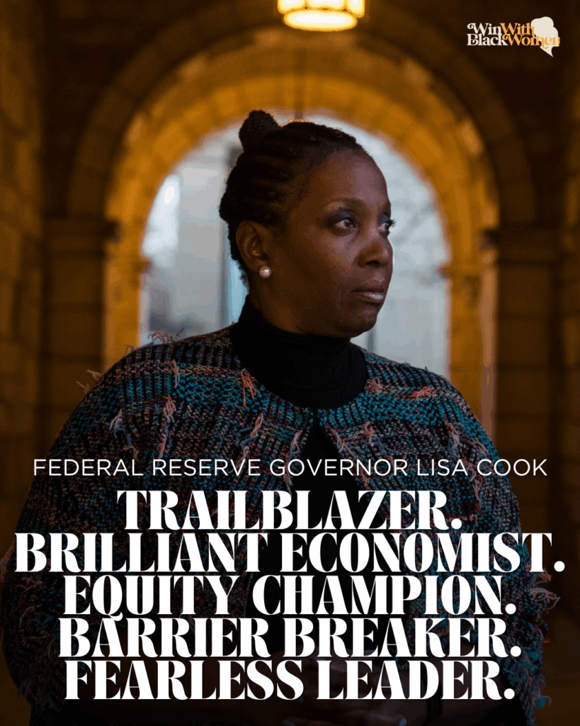 #WinWithBlackWomen is asking its national network to stand in solidarity with Dr. Lisa Cook who is battling back against President Donald Trump’s attempt to fire her. Cook is the first Black woman to serve on the Federal Reserve Board, which Trump has criticized for its refusal to lower interest rates.